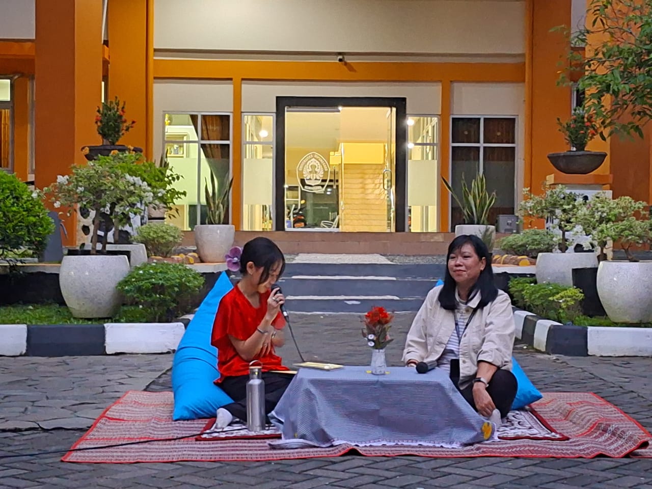 Bidang Pemberdayaan Perempuan (PP) Badan Eksekutif Mahasiswa (BEM) Fakultas Ilmu Budaya (FIB) Universitas Diponegoro (Undip) pertahankan acara bedah buku Saman karya Ayu Utami di tengah hujan pada Jumat (16/5/2025) dalam kegiatan bernama Teras Muda I.